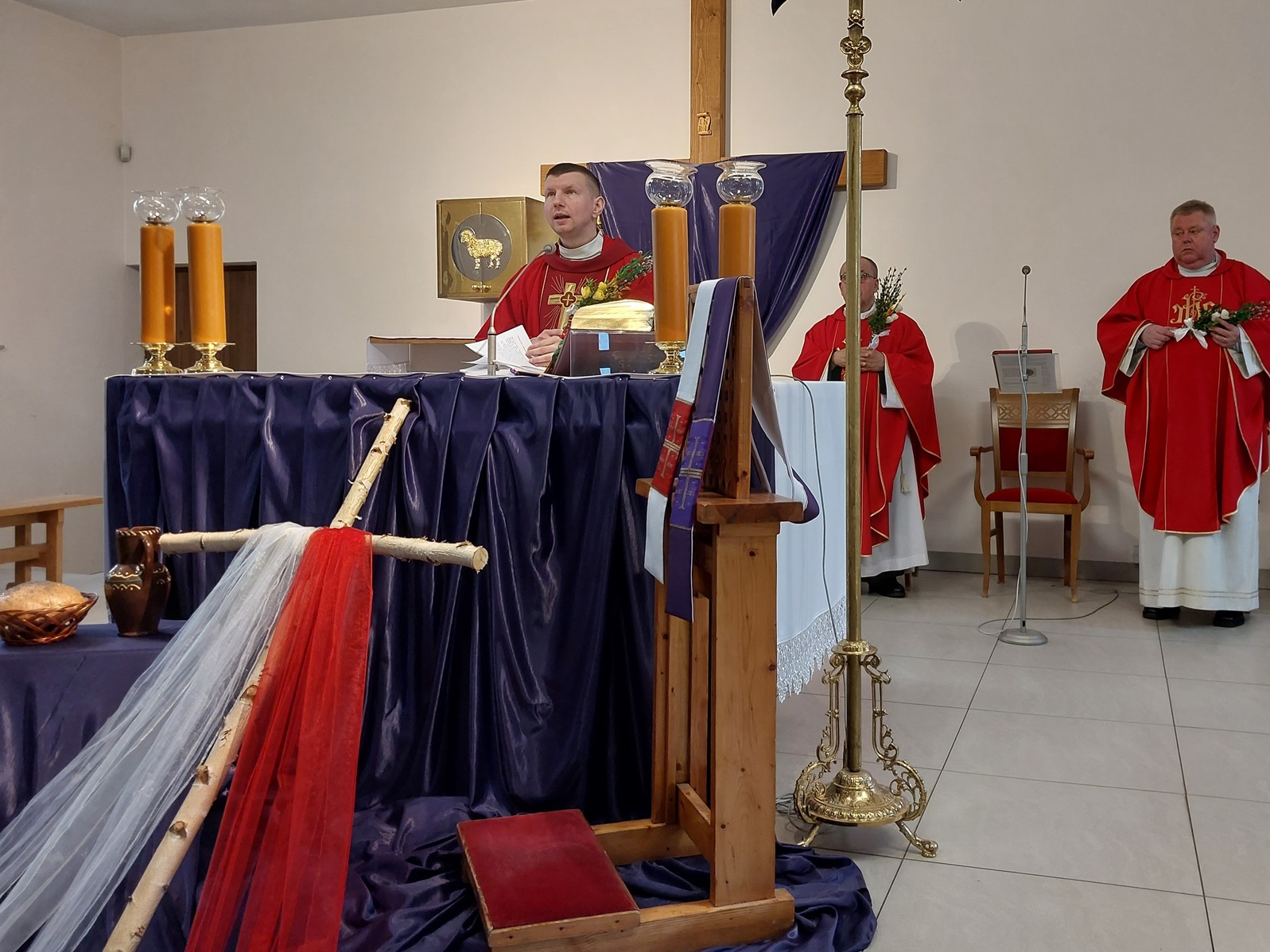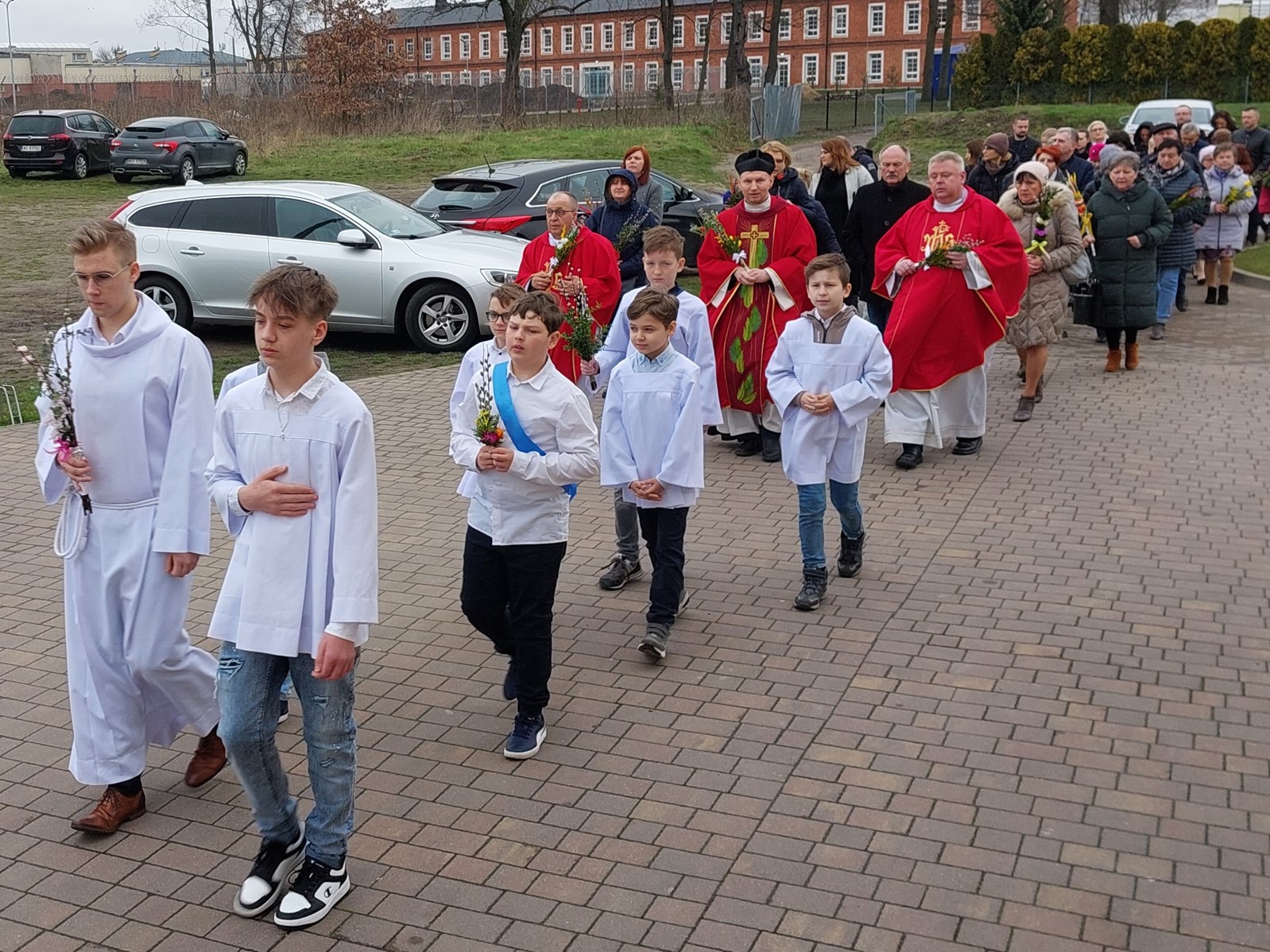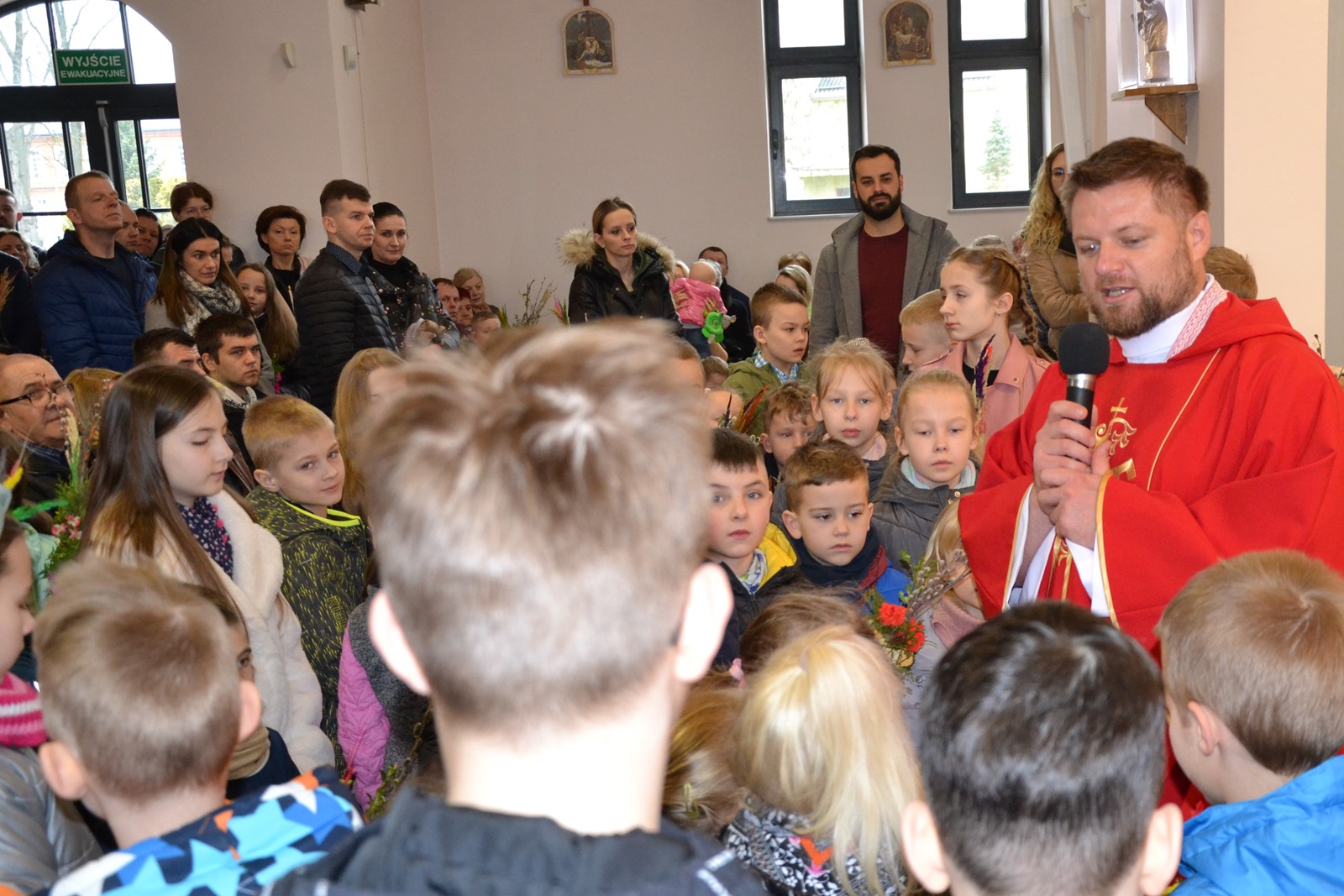 02 kwietnia 2023 przeżywaliśmy Niedzielę Palmową. Podczas Mszy Świętej o godzinie 10.30 dzieci zaprezentowały swoje palmy i wraz z ks. Pawłem Padyszem omówiły ich symbolikę i rozmawiały o zbliżającym się Triduum Sacrum. O 12.00 zaś wysłuchaliśmy Ewangelii o wjeździe Jezusa do Jerozolimy i przeszliśmy w procesji z palmami.