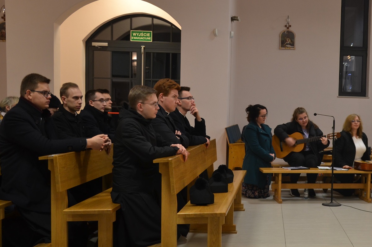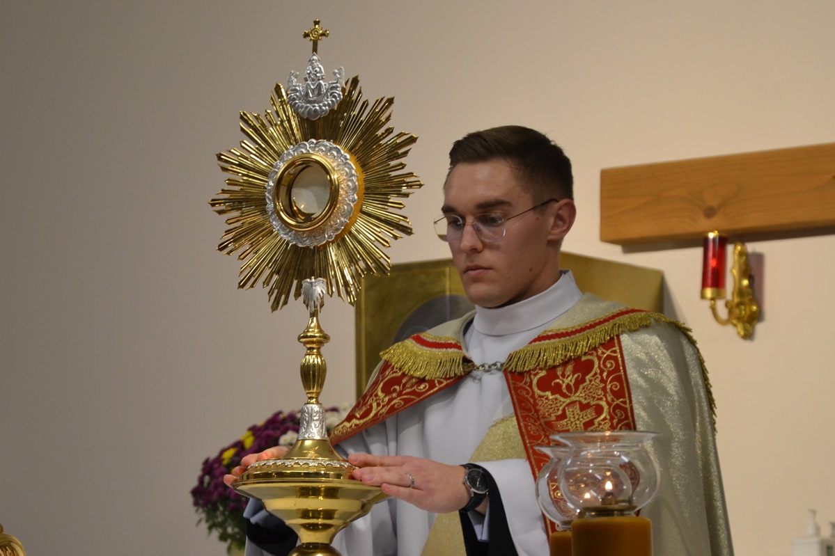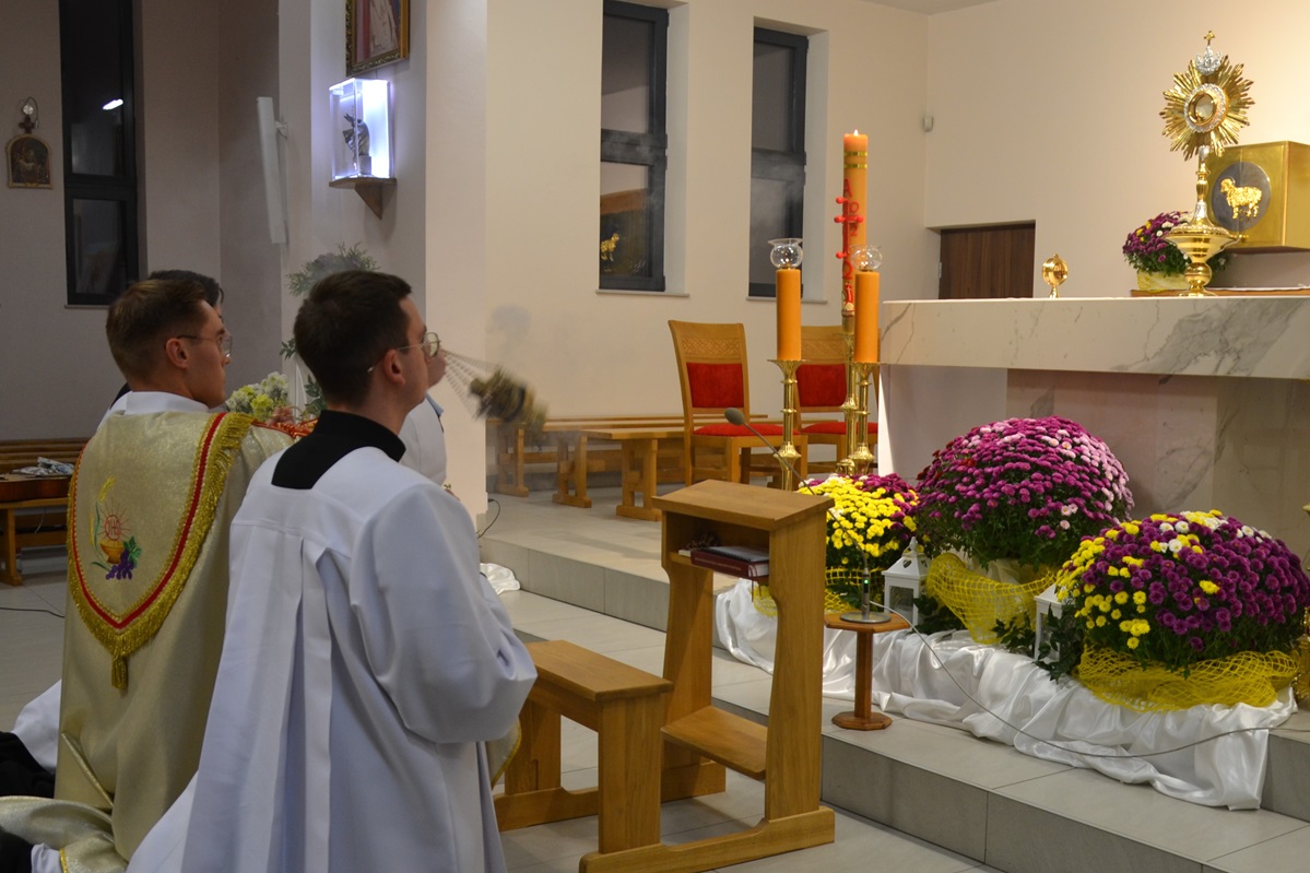 Adoracja składała się z trzech części. Najpierw z racji Pierwszego Czwartku Miesiąca odmówiliśmy Litanię do Najdroższej Krwi Chrystusa, następnie rozpoczęliśmy Nowennę do Św. Jozafata Kuncewicza, a w ostatniej części prosiliśmy o nowe powołania do kapłaństwa, prosiliśmy za kleryków naszego seminarium i naszych kapłanów, a także błagaliśmy Boga, aby każdy z nas mógł odkrywać swoje życiowe powołanie.