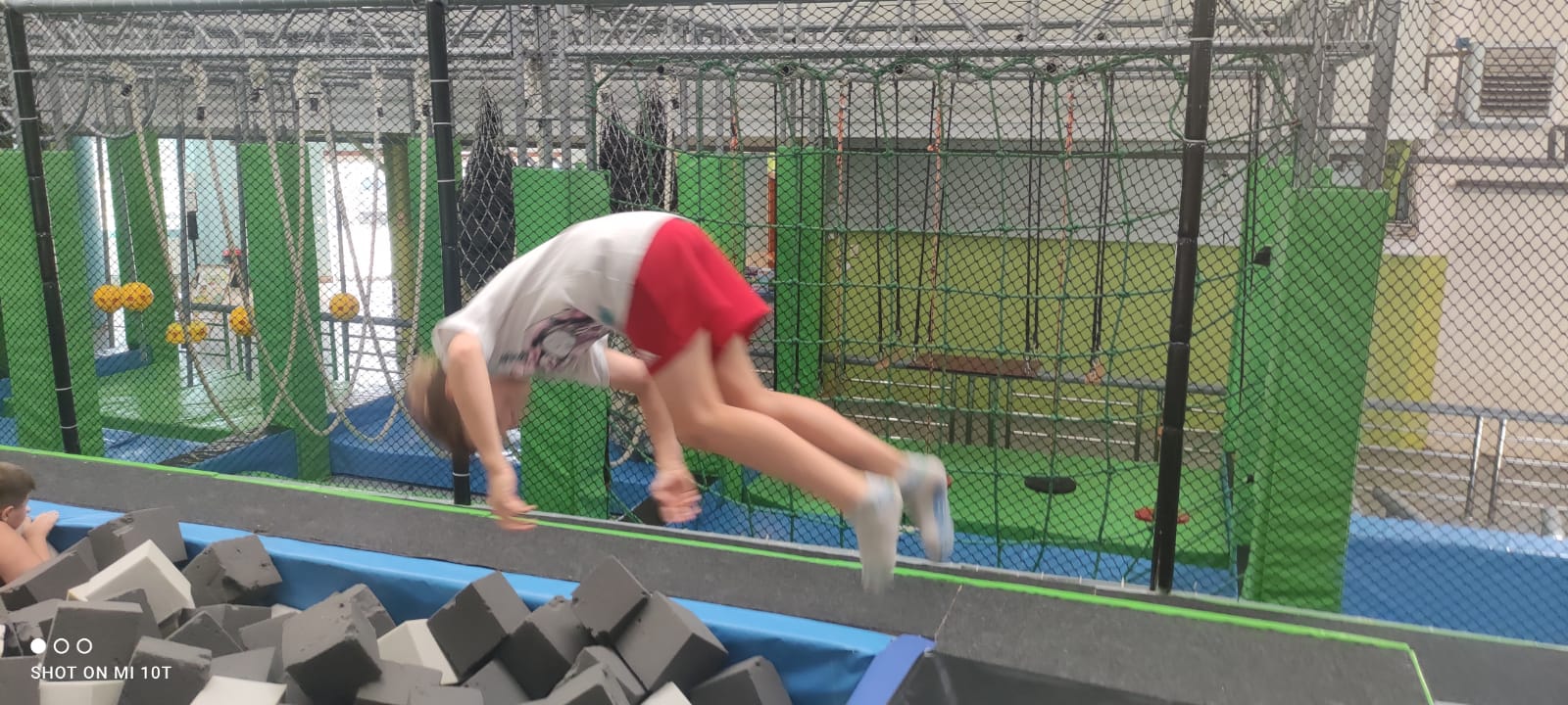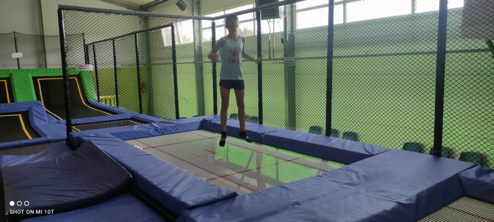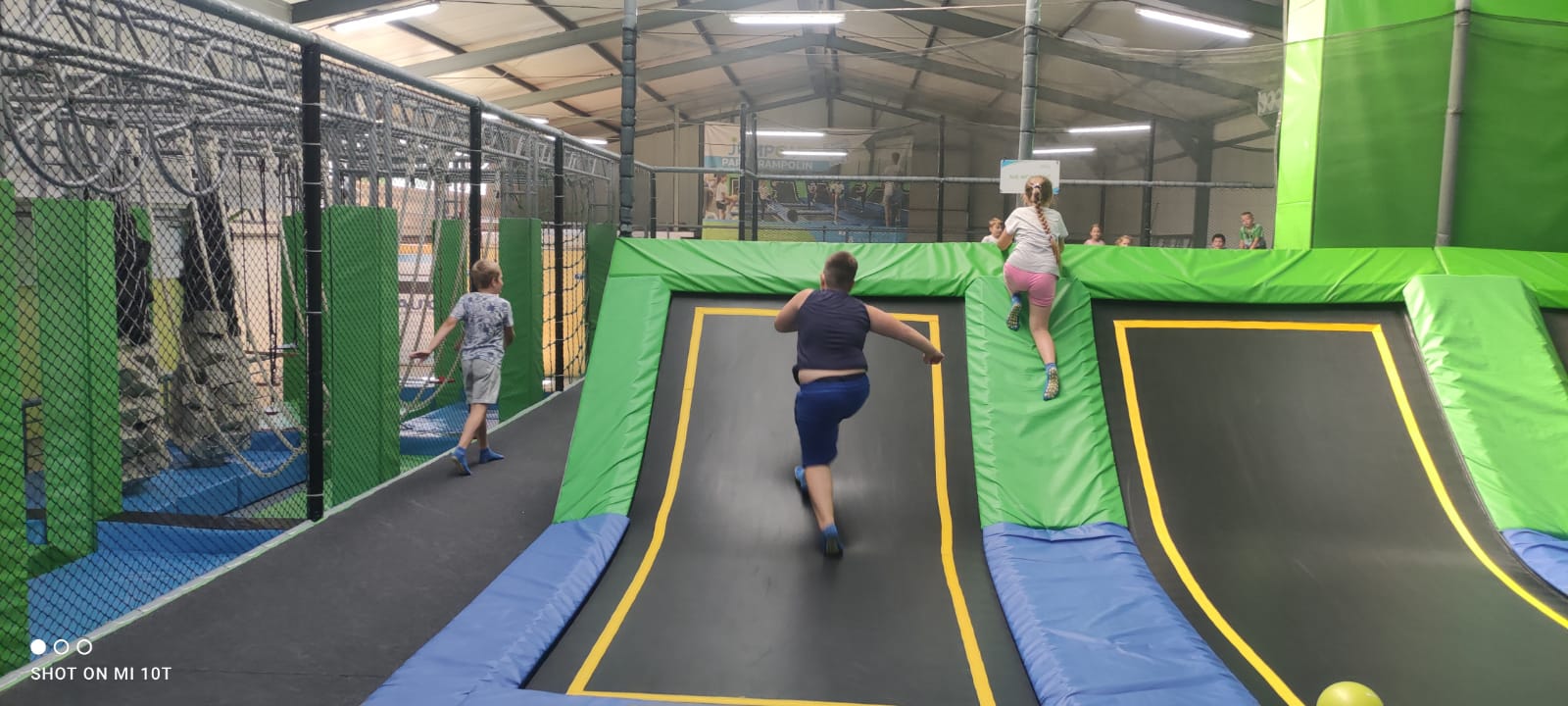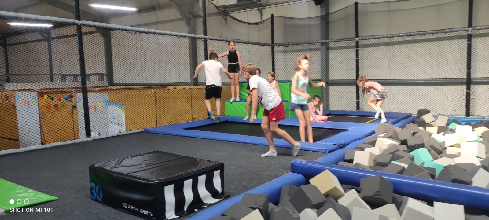 Kolejny dzień to szaleństwo w parku trampolin. Podskoki, salta, pokonywanie przeszkód, rzuty do kosza, wyskoki i upadki w basenie gąbek – to tylko niektóre atrakcje, które towarzyszyły naszej wesołej grupie. Na wszystkich twarzach spływały krople potu. Jednak nie był to pot wyczerpania, raczej radości z możliwości wyrażenia siebie, wykrzyczenia, wytańczenia. W zabawie uczestniczyli też opiekunowie – p. Monika wytrwale fotografowała wybryki, ksiądz Paweł podrzucał gąbki, które dzieci miały za zadanie złapać i robiły to naprawdę ambitnie.