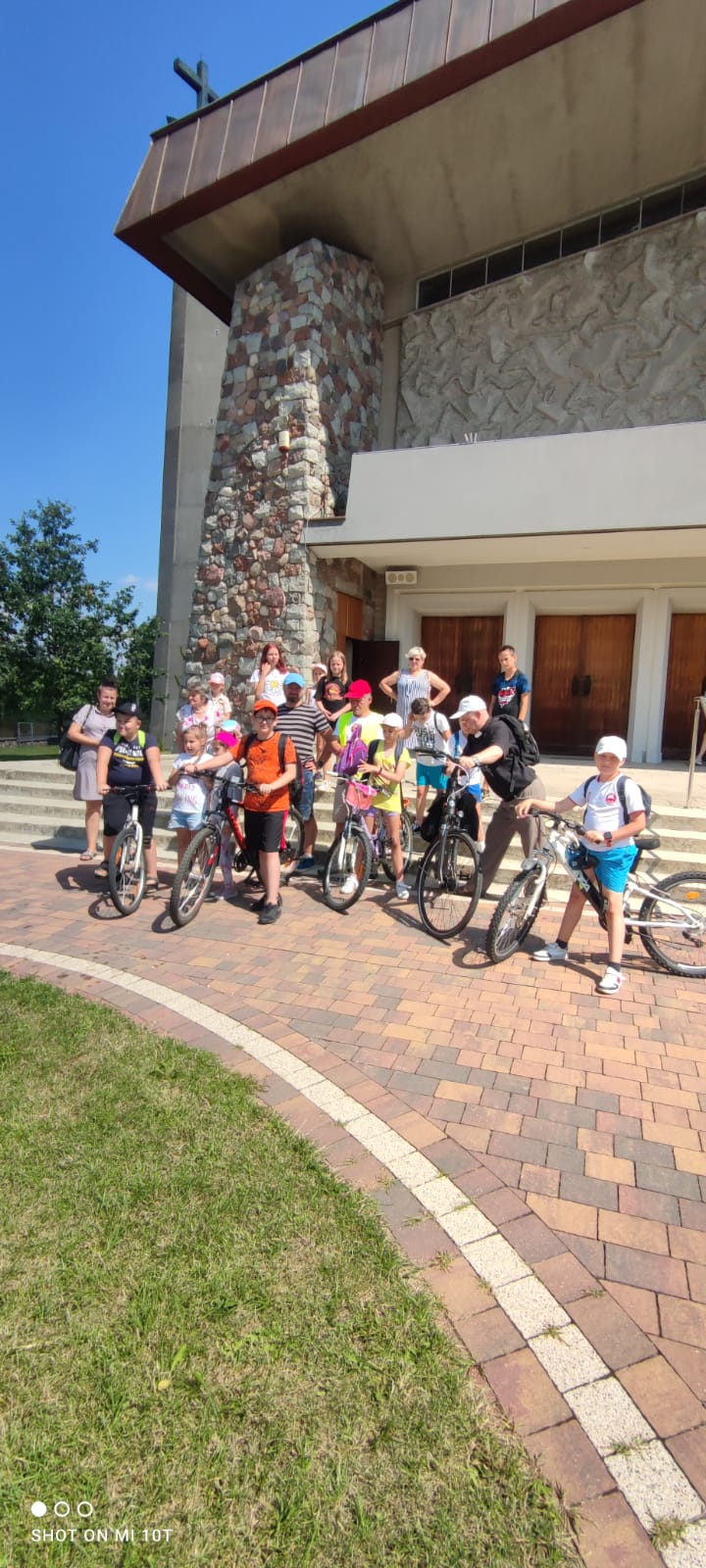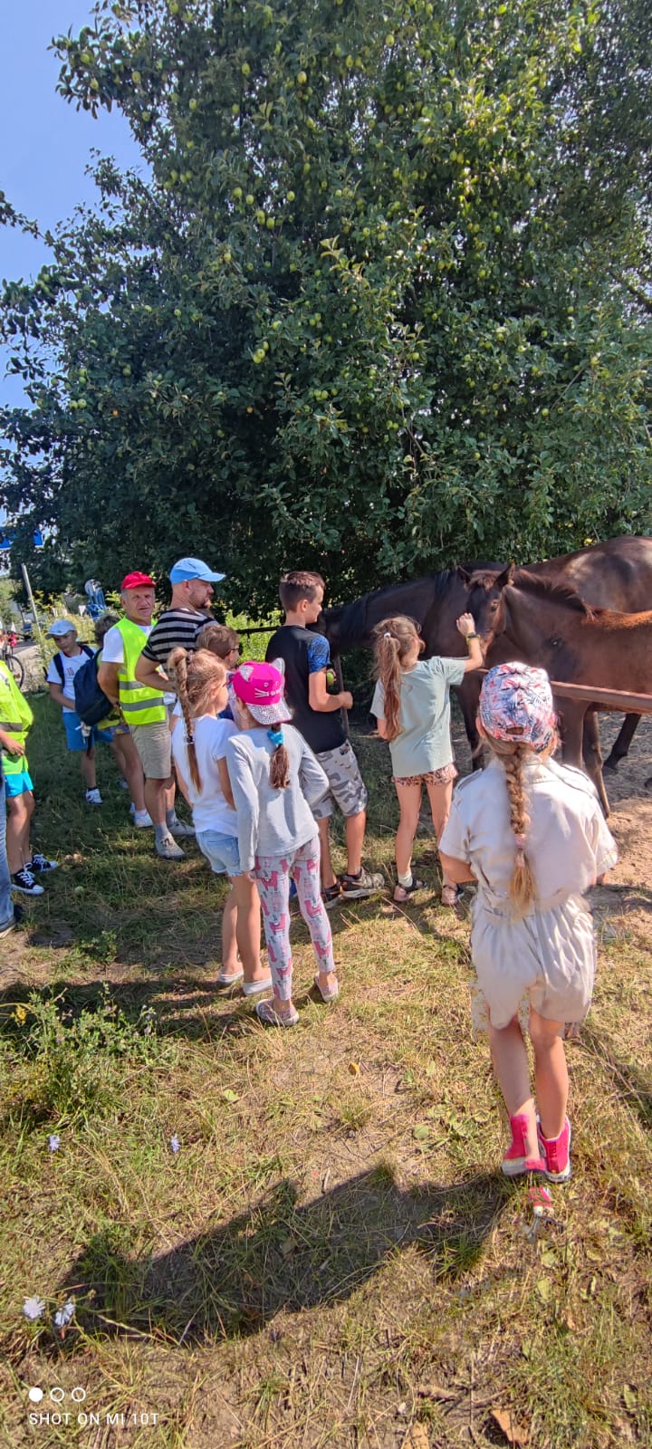 Piątek był przeznaczony na pielgrzymkę rowerową. Choć Wołyńce są oddalone od naszej parafii 7 kilometrów, to dla niektórych była to wręcz „wyprawa życia”. Wspólna droga, modlitwa, nawiedzenie cmentarza i kościoła w Wołyńcach – taki był plan. Życie zawsze weryfikuje nasze oczekiwania. Tak było i tym razem. Nasza wyprawa, podzielona na dwie grupy, po drodze zatrzymywała się na krótki odpoczynek, a tam po drodze… przepiękne koniki oraz malowniczo rozciągający się widok doliny Muchawki.