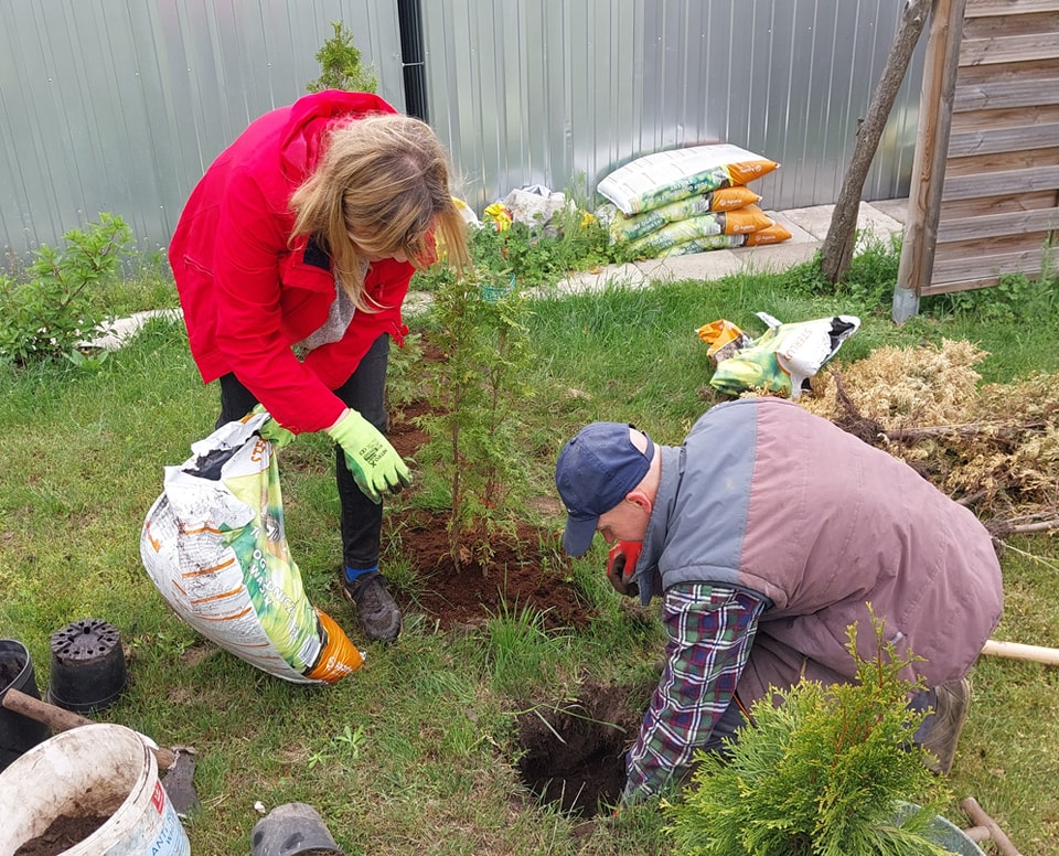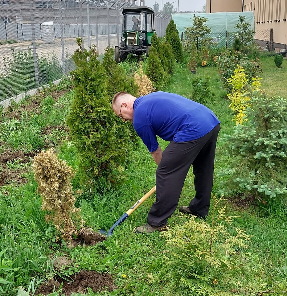 Grupka Parafian wraz z Proboszczem dbają o parafialny ogród. Dziękujemy za zaangażowanie