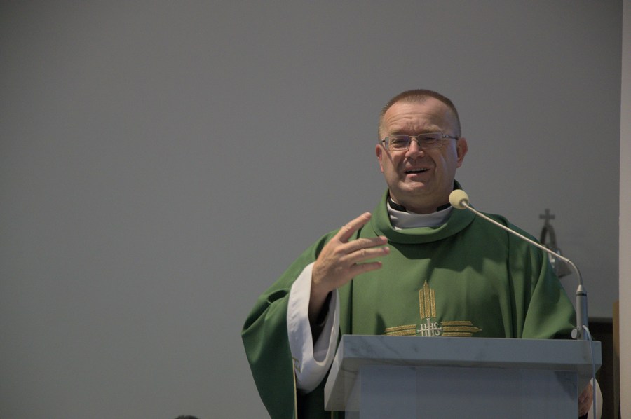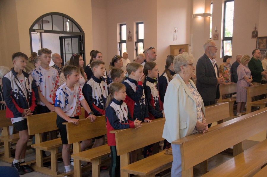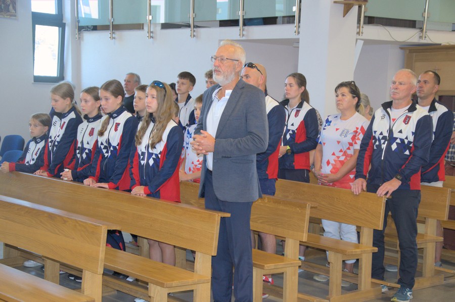 Ks. Proboszcz w kazaniu podkreślił konieczność rozpoznawania głosu Ducha Świętego i złego ducha, odrzucania fałszu zmieszanego z prawdą, oraz budowania wspólnoty pomiędzy szczególnymi pielgrzymami. Młodzi sportowcy oraz towarzyszący im rowerzyści wieźli intencje osobiste, swoich bliskich oraz parafialne – szczególnie rozpoczętej budowy kościoła, mając w tym swój wkład. Pielgrzymom towarzyszy duszpasterz – ks. Paweł Padysz.