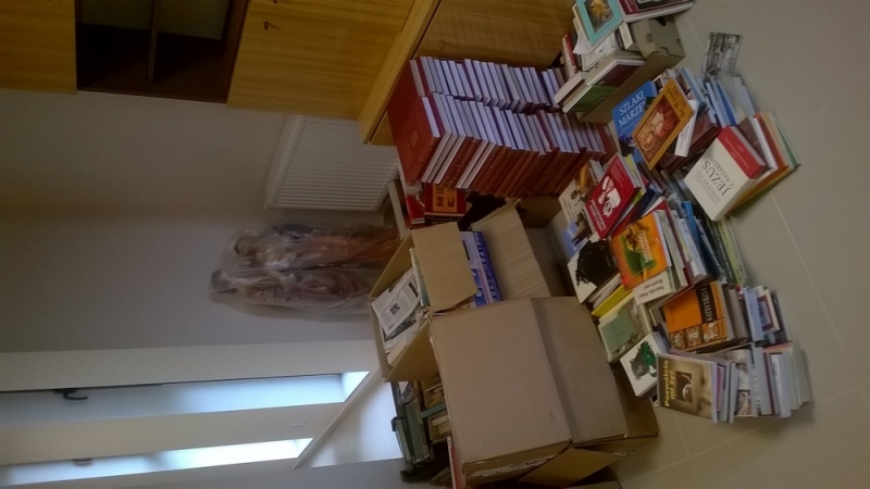 Pomysł powstał zaraz po przygotowaniu salek w budynku duszpasterskim. Nasze Panie bibliotekarki (autentyczne entuzjastki książek, ze stażem prowadzenia bibliotek), zabrały się najpierw do segregowania dostarczanych przez różne osoby książek. Przewinęło się ich pewnie ok 50 tyś, z czego ok 3,5 tyś zostało zakwalifikowane jako zbiory biblioteczne.