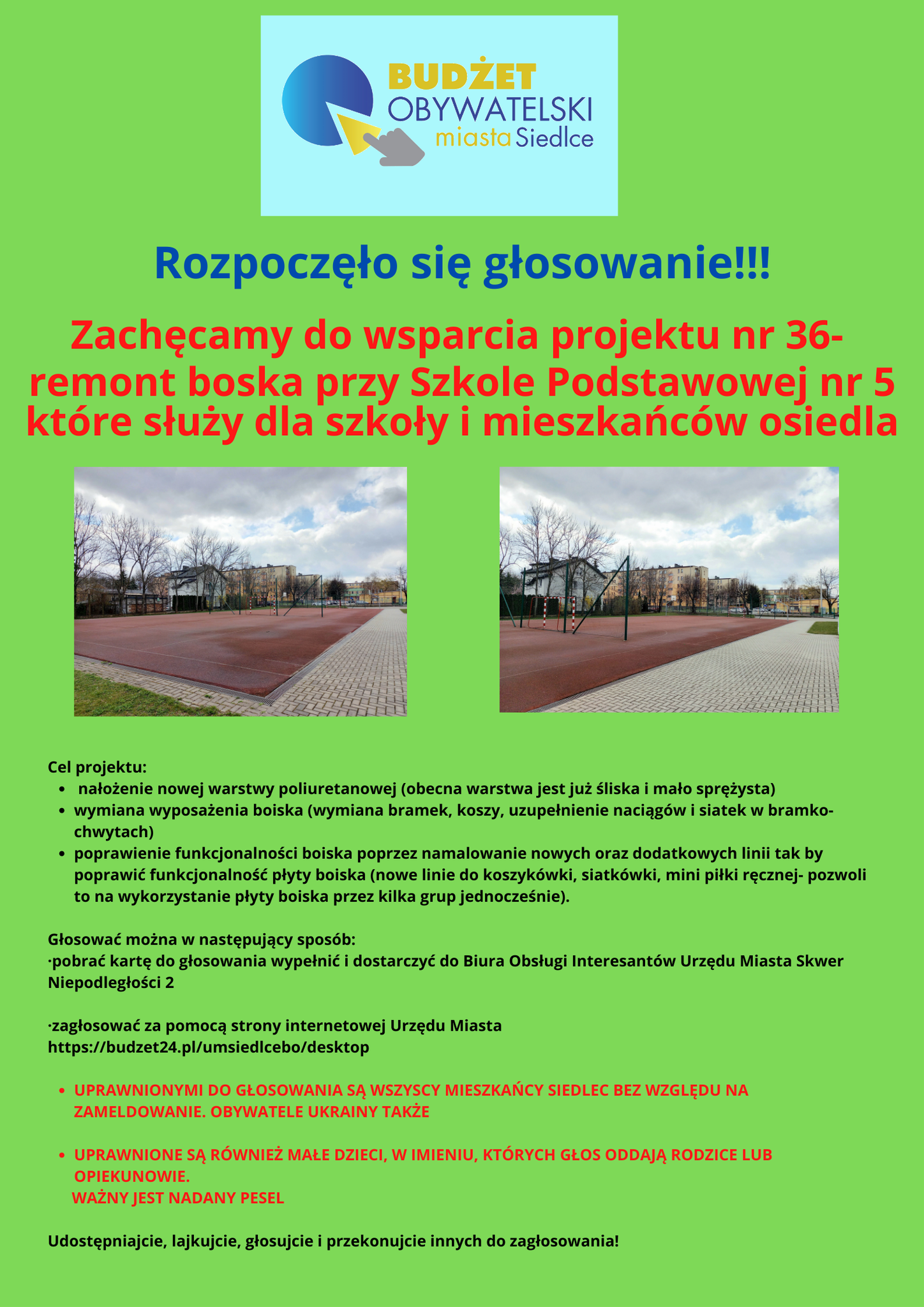 UPRAWNIONYMI DO GŁOSOWANIA SĄ WSZYSCY MIESZKAŃCY SIEDLEC BEZ WZGLĘDU NA ZAMELDOWANIE. OBYWATELE UKRAINY TAKŻE.