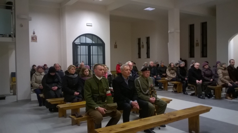 Dnia 1 marca była sprawowana w naszej kaplicy Msza Święta w intencji żyjących oraz poległych Żołnierzy Wyklętych. Mszy Świętej przewodniczył ks. Bogumił Lempkowski, prefekt Królówki nas wspomagający, Miłą niespodzianką było przybycie p. kapitana AK, Mariana Bujalskiego i Huberta z Grupy Rekonstrukcyjnej WP. Była obecna uczestniczka Powstania Warszawskiego, p. Irena Zaunar oraz wspominaliśmy p. Klewka z ul. Żwirowej, aktualnie chorego. Bożemu Miłosierdzu polecaliśmy śp. p. Mieczysława Ławeckiego.