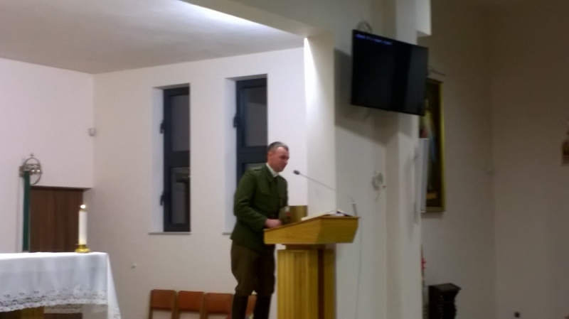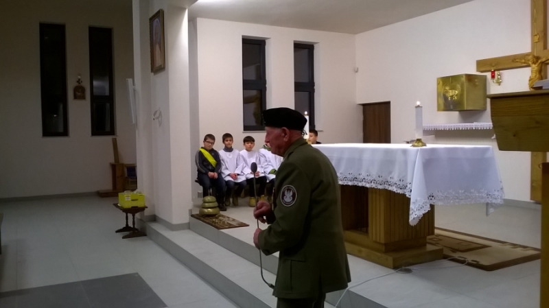 Po Mszy Świętej garścią wspomnień podzielił się p. Marian Bujalski a o sensie działania Grupy Rekonstrukcyjnej mówił Hubert, który dodał, że początkiem zainteresowań było harcerstwo, o którym marzy dla naszej parafii.