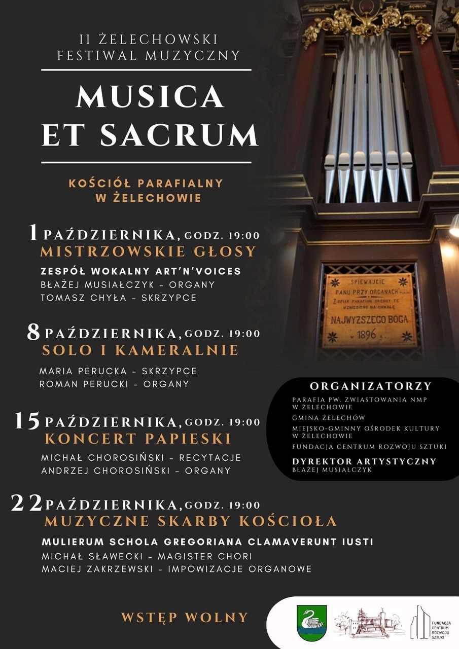 Otrzymaliśmy ostatnio zaproszenie od dawnego wikariusza naszej parafii – ks. Mariusza. Parafia w Żelechowie, Burmistrz Żelechowa oraz MGOK w Żelechowie zapraszają na II edycję Żelechowskiego Festiwalu Muzycznego, który rozpocznie się w najbliższą niedzielę 1 października o godzinie 19 w Żelechowie. Festiwal trwać będzie przez cztery kolejne niedziele października. Wystąpią: zespół wokalny, organiści, skrzypkowie, recytator oraz scholą gregoriańska. Więcej informacji na plakacie w gablocie. Ksiądz Mariusz serdecznie Was wszystkich pozdrawia, zapewnia o pamięci bardzo się ucieszy widząc Was w Żelechowie.